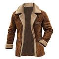 2025 Men's Vintage Suede Shearling Coat, Fleece Lined Mid-Length Jacket with Zipper Pockets, Reverse Collar, and Warm Wool Fur